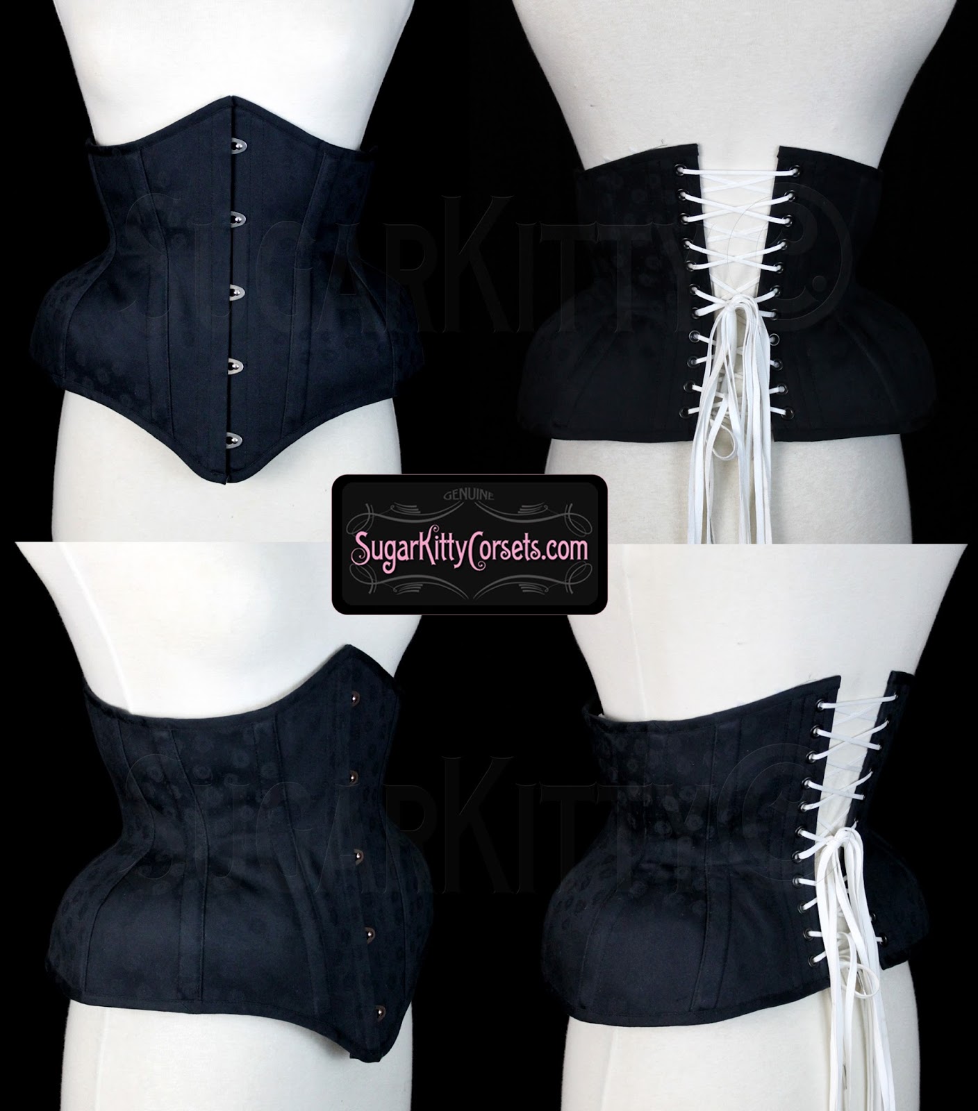Fully custom Stella Cincher. Made from black cotton jacquard, featuring 1/2" boning & white polypro laces.